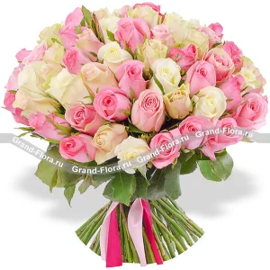 Амур – букет из высоких кремовых и розовых роз (70 см)