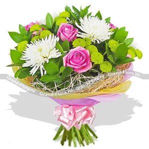 Свидание в Рио + шоколад - букет из хризантем,гербер и роз с шоколадом