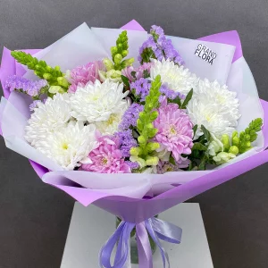 Очарование нежностью – букет из кустовых хризантем