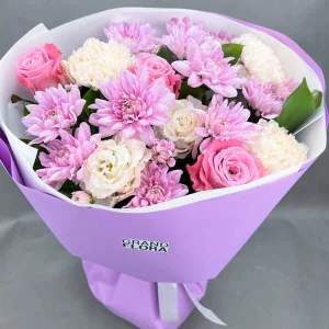 Улыбнись новому дню - букет из гербер, хризантем и эустом