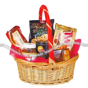 Корзина "Сладкоежка" - корзина со шоколадом, печеньем и медом