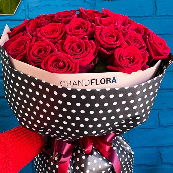 Идеальный подарок для любимой! Букет из красных роз классный, крупные бутоны с насыщенным ароматом. Доставили вовремя, упаковка была аккуратной и элегантной, да без горошка, но это даже лучше. Моя девушка пришла в восторг, и я сам не ожидал, что цветы окажутся настолько красивыми!