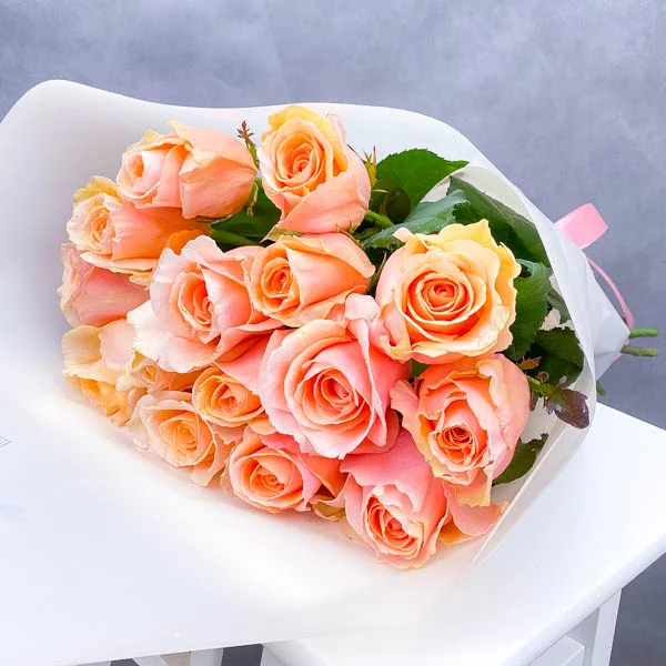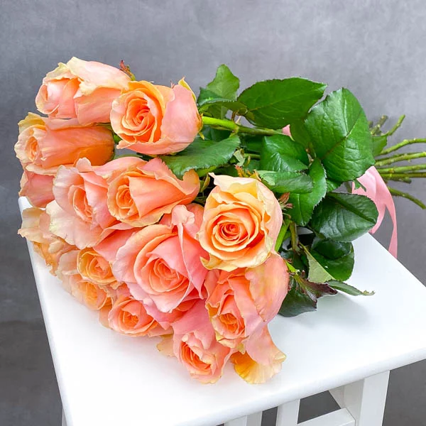 Роза розово-персиковая/кремовая (количество, выбранное Вами) 50 см., лента. По Вашему запросу - возможно оформление в упаковку.