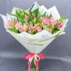 Стандартный: Альстромерия микс в розово-белом/ розово-фиолетовом оттенке - 11 шт., декоративная зелень, упаковка, бант розовый. Примерный диаметр букета 30х30 см.